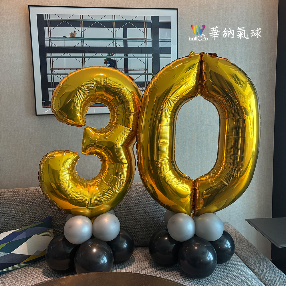 80公分銀色大數字 | 金銀豪華數字氣球組
