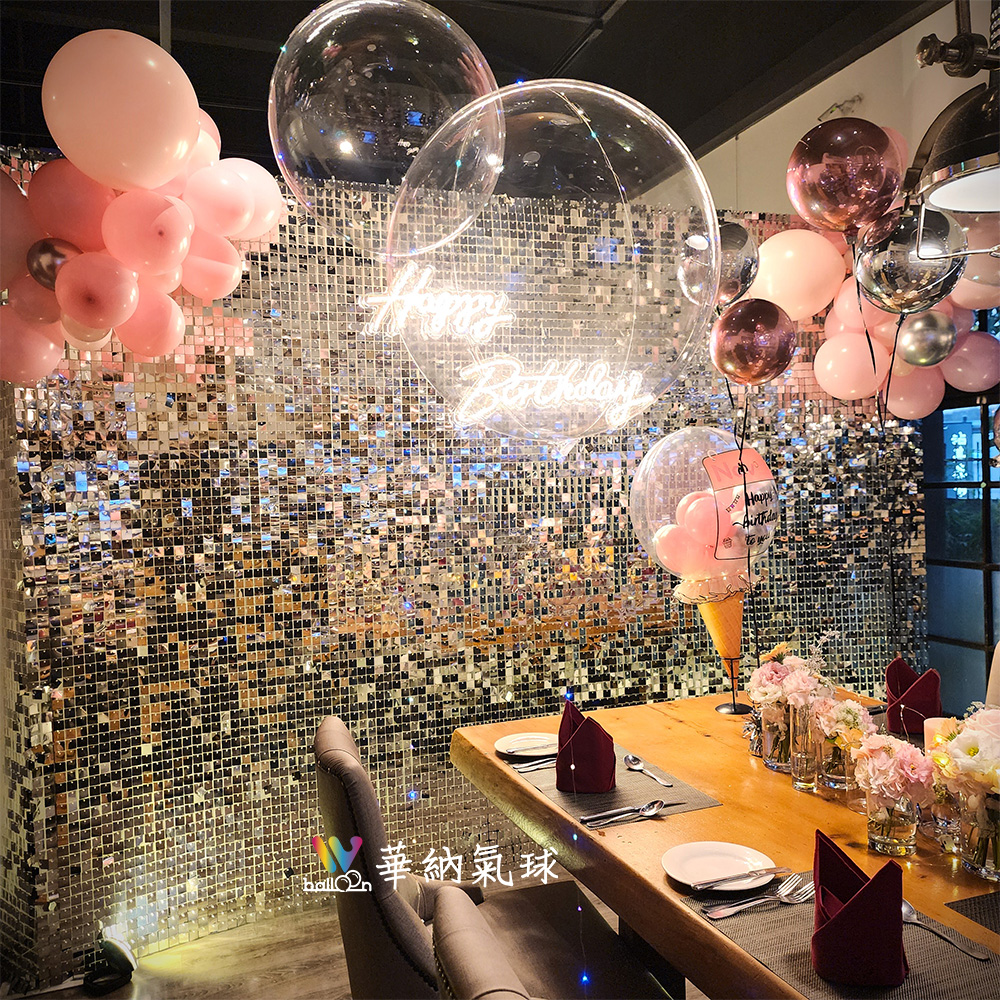 尾牙餐會佈置 | 馬上發亮片牆氣球布置組 |【專人進場佈置+撤場】
