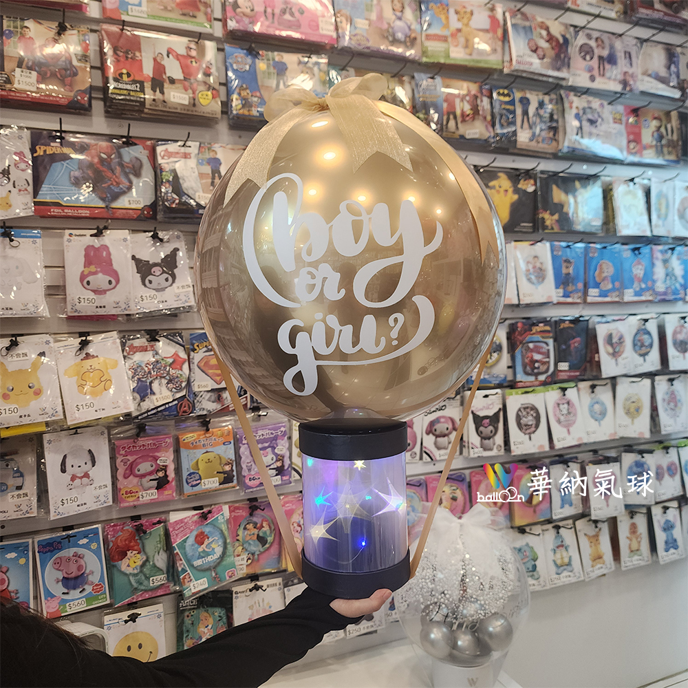 40公分性別揭曉氣球抱抱桶 | LED星芒特效款 |【含刺棒 貼字 LED星芒底座】