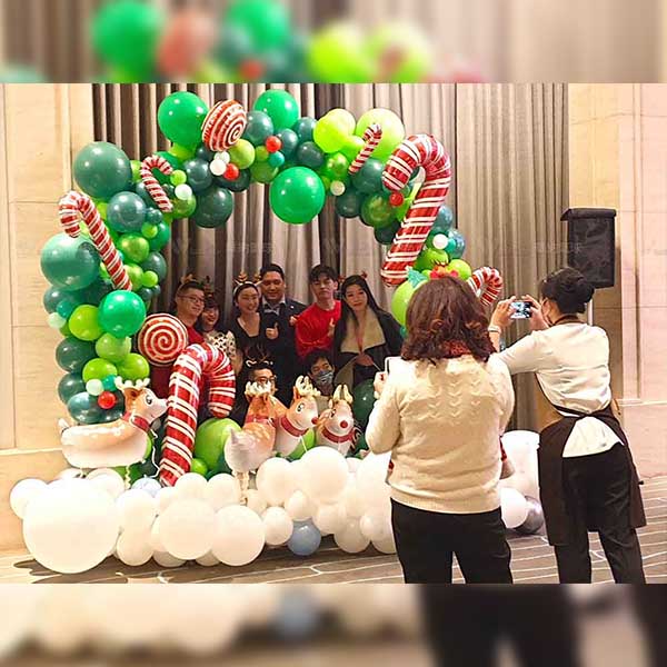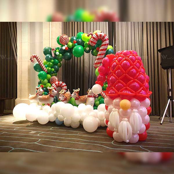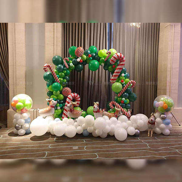 大大小小拐杖糖鋁箔球+紅白小球點綴