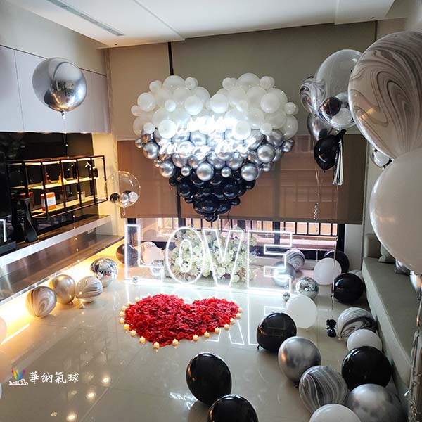 18吋鋁箔愛心銀色4顆黑色4顆