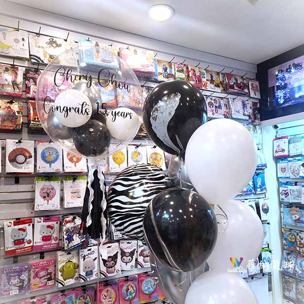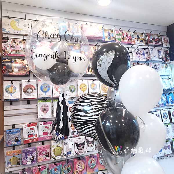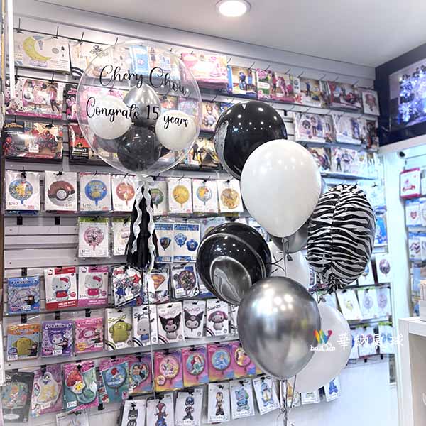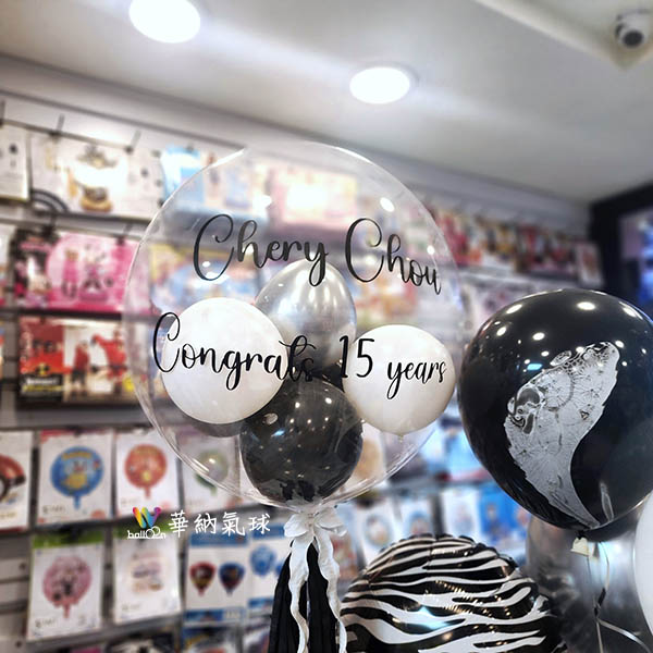 45公分手工泡泡球1顆【含貼字+流蘇】 精緻球串1串內容: 18吋鋁箔球1顆 12吋Chrome銀2顆 12吋黑色瑪瑙球2顆 12吋標準白3顆 精緻底座2組 購買商品,請聯繫我們 會員再享5%回饋 LINE: @wballoon(這裡加會員) 註冊會員教學 將喜歡的氣球款式截圖給我們 依照您預算範圍及風格 客製化製作 實體店面提供氦氣服務 聯絡電話 :02 2715-1010 營業時間: 週一~週五09:00~20:00 週六~週日09:00~18:00 門市地址:台北市長春路500號1樓 南京復興捷運站(7號出口)步行8分鐘 【MAP】 一般乳膠球飄浮時間為8小時,請於當天兩小時前來店領取。 溫馨提醒:灌空氣是不會飛的,必須由我們幫您灌“氦氣”才能飄浮。