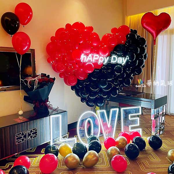 26吋紅色愛心鋁箔球+LED燈條4顆