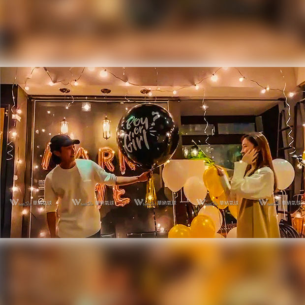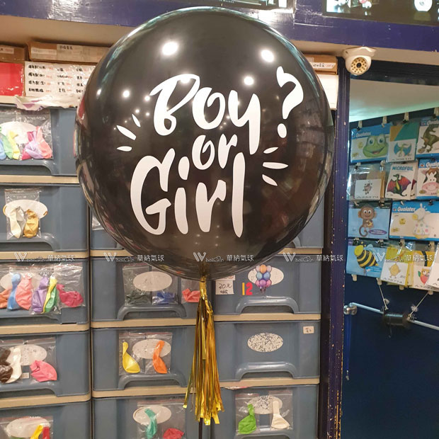 60公分黑色性別揭曉氣球+貼字+流蘇 1顆